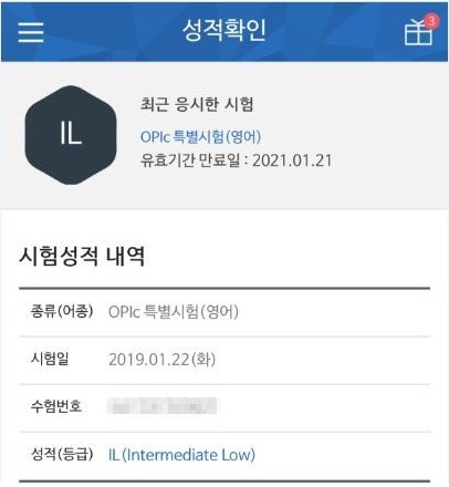 그 결과 드디어 IL등급이지만 저도 당당히 합격하게 되었네요~!