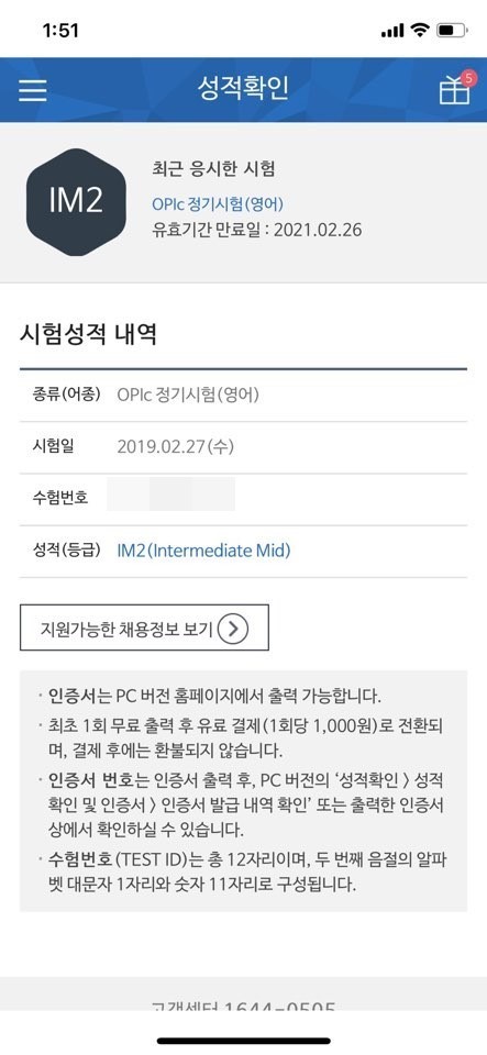 그리고 집 가서 일단 시험 다시 신청해두고 시험 결과 기다리면서 계속 공부했습니다. 며칠 뒤 결과 발표날 확인을 해보니 다행히도 한 번에 IM2를 획득하게 되어 신청했던 시험은 바로 취소했습니다. ㅎㅎ