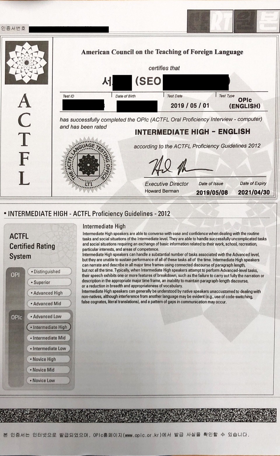 IH이상 획득時 주재원 등 해외근무를 위한 기본 요건도 갖출 수 있어 시작하게 되었습니다.