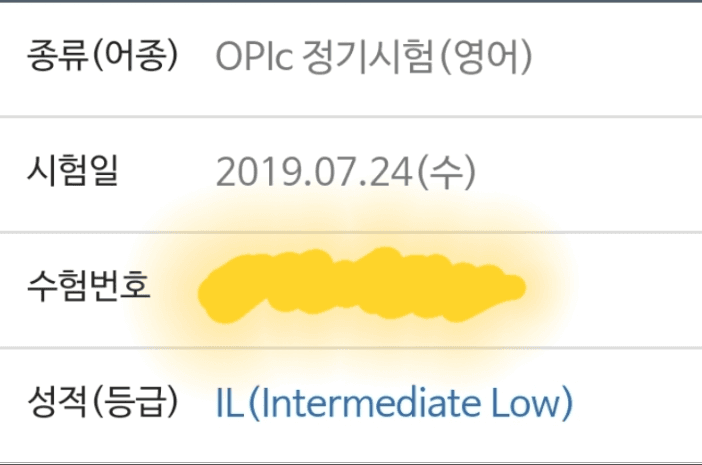 예전에 오픽 등급이 있었으나 올해 5월에 만기 되면서