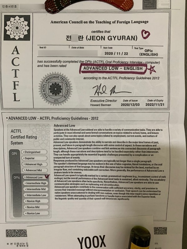 근데 Advanced Low 라고 나오길래, Low? 그런 등급이 있나? 망했나 보네 했습니다.