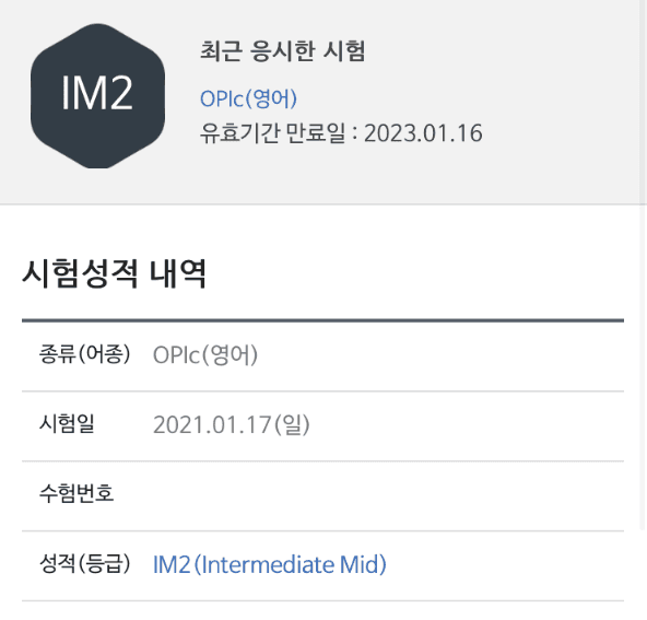 그 결과, 오픽에 관해서 단 1%만큼의 지식도, 경험도 없는 제가 4일만에 IM2라는 점수를 획득했습니다.