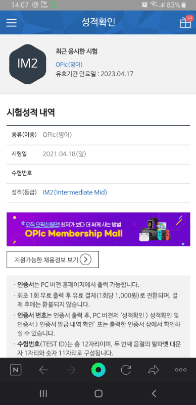 개인적 도전과 회사 필요 요구에 의한 처음 도전한 오픽을 대비 하면서 강사님의 긍정적 마인드 및 1대1의 맞춤 교육에 의한 목표 등급을 획득 할 수 있었던것 같습니다.