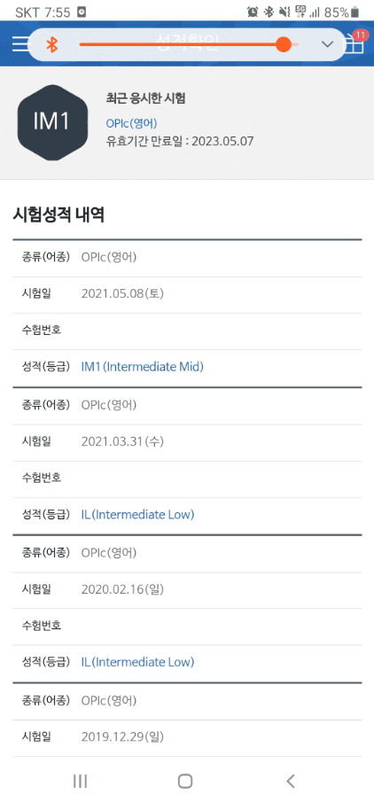 5회차 시험에서 아직 안배운 어려운문제가 나와서 당황하였지만 이전에 알려주신 스크립트를 응용하여 대답을하였고 목표로하는 3급취득하였습니다.