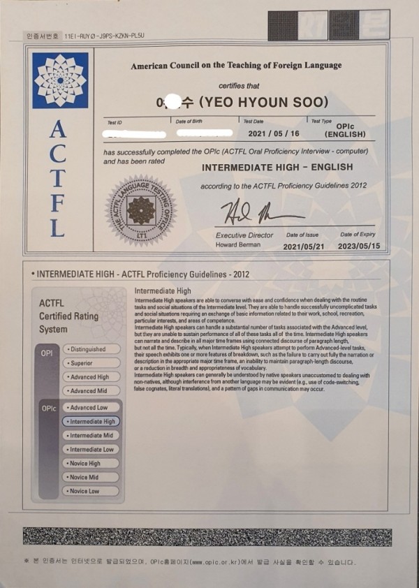 아마도, 첫번째 시험에서 Level 5 로 응시했다면, 충분히 IM3~IH 를 취득했을 것으로 생각됩니다.
