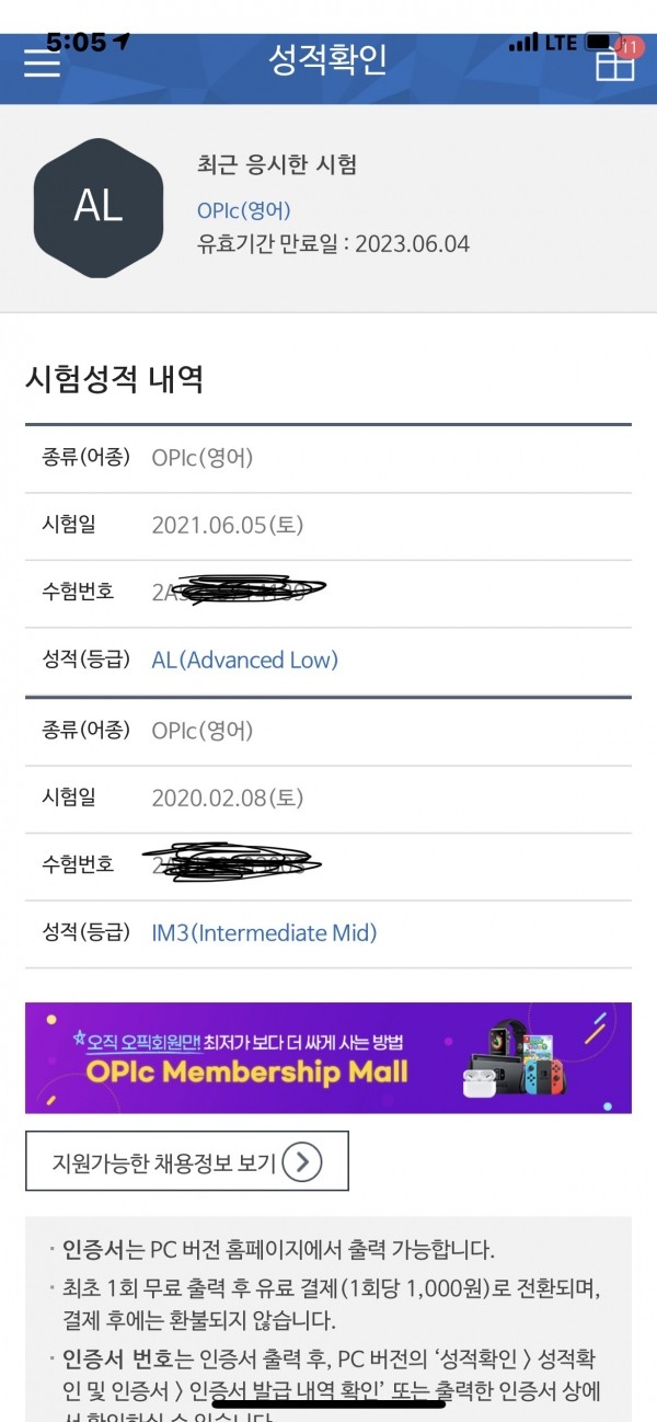 기존에 시험을 2차례 봤는데 IH(2018년), IM3(2020년)를 맞은 적이 있었고,