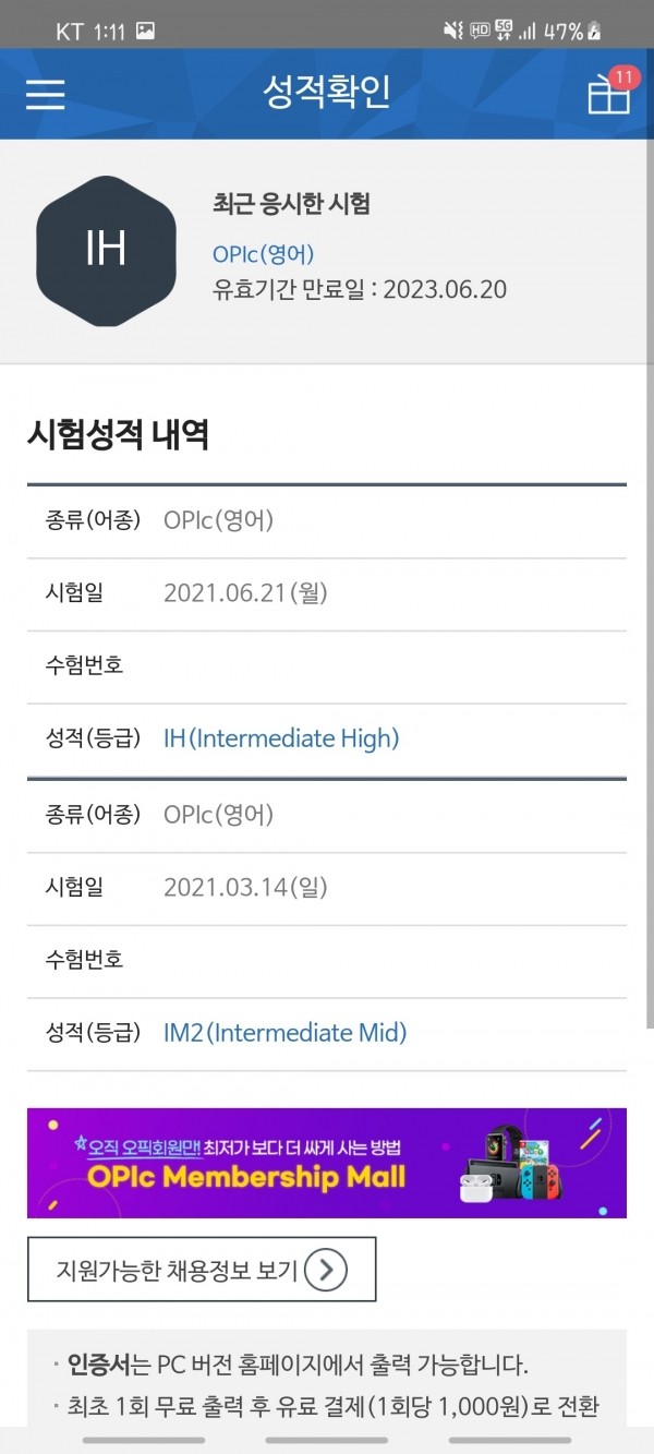 오픽이 더 쉽고 재밌다고들 하더라구요.. 근데 오픽도 인강으로 준비하려니 내가 잘하고 있는건지도 막막하고 어휘자체가 부족한편이라 한정된 발화만하고 있다는 생각이 들었어요. 그래도 어떻게든 혼자 시험을 봤는데 IM2가 나오는 걸보고는 당장 학원에 등록해야겠다고 생각했던 것 같아요...ㅎㅎ