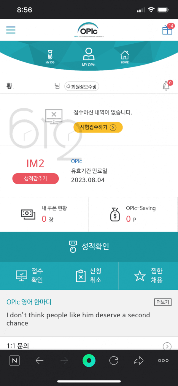 혼자 할 자신이 없던 저로써는 612어학원에 상담 전화를 하였고, IL 등급은 대부분 무난하게 획득한다는 답변을 들었습니다.