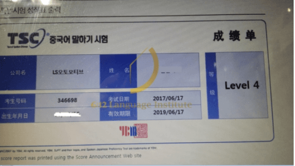 HSK 취득 이 후 회사 정책으로 TSC 만 성적 인정 , 중국어는 약 1년 반 정도 공부하였으나 문법 및 독해 위주로