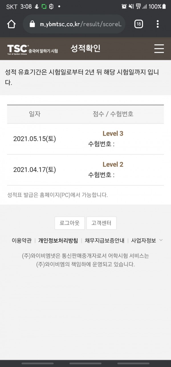 처음 공부 시작할때도 5월내 등급취득이 목표라고 했었는데, 5월 말 level 3 성적을 받게 되었습니다.