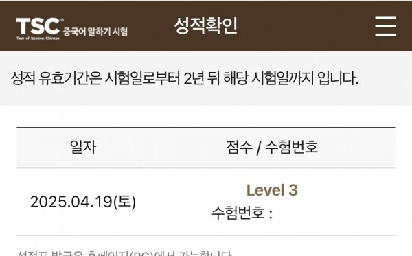 수업듣고 한 달 후 연습 삼아 시험을 봤고 바로 3등급이 나와서 바로 선생님께 자랑했습니다!!