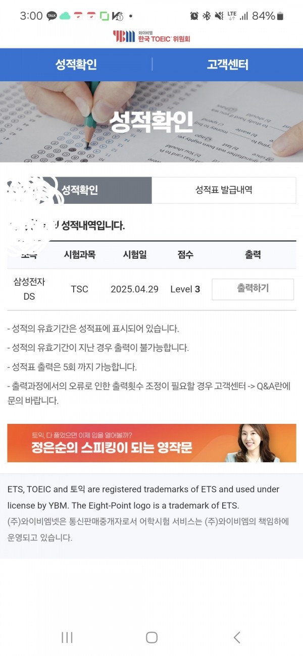 회사 진급에 tsc 점수 가점이 필요하여 수업신청하였습니다.