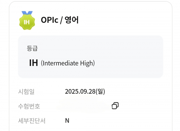 초기등급 IM1, 목표등급 IH, ,획득등급은 IH 입니다. |