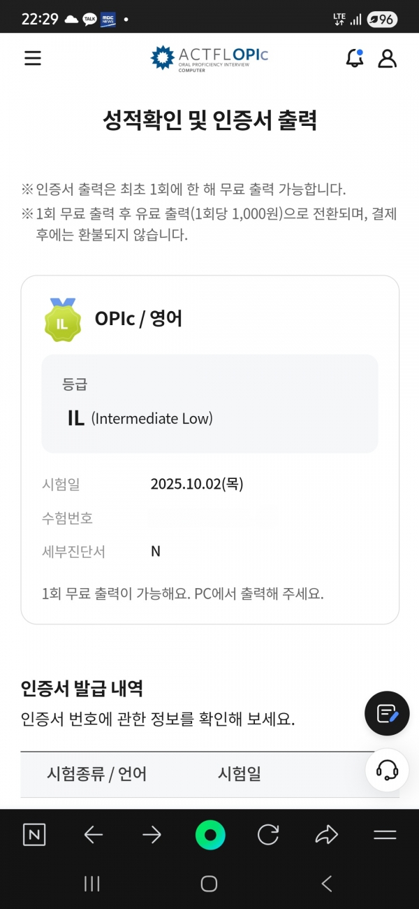 | 오픽무급에서 목표 IM1, 획득등급 IL 입니다 |