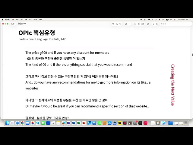 612 Opic 상황극 AL 스크립트 & 실전 문제 풀이
