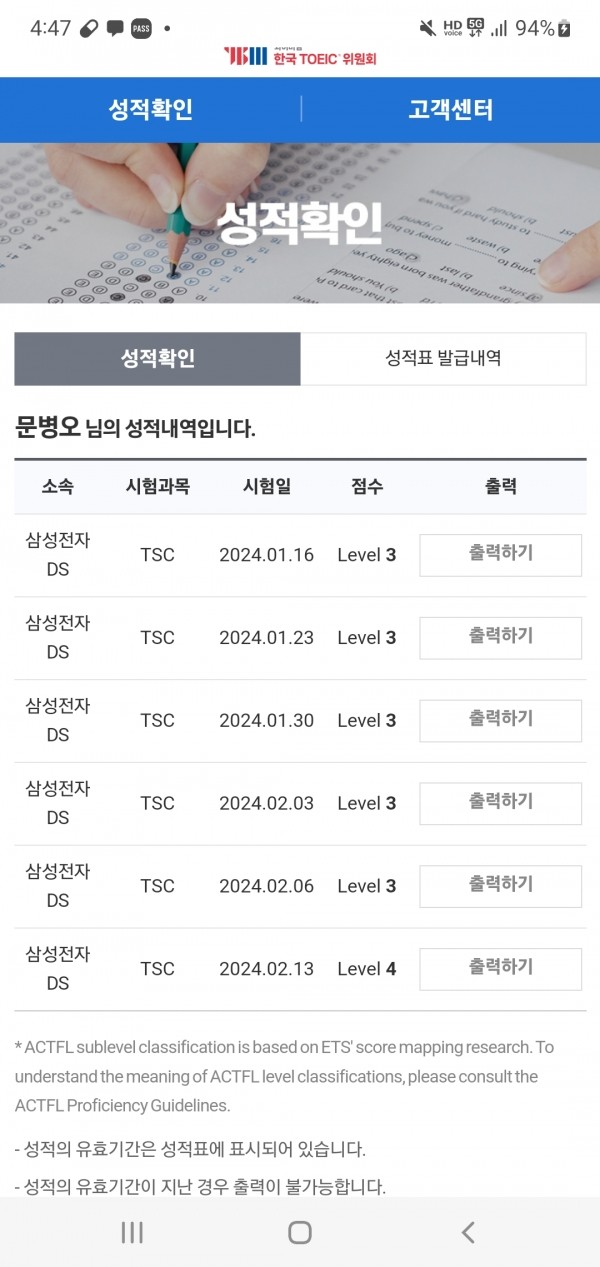 제가 회차 마무리 전에 갑작스럽게 취업에 성공해서 오픽 시험을 예정보다 앞당겨 보게 되어 긴장과 부담감이 심했었는데 구영은 선생님께서 멘탈 케어와 더불어 시험에서 중요한 점을 매일 상기시켜주셨습니다. 결국 저는 모든 연습 과정을 통틀어 시험에서 가장 유창하게 발화할 수 있었고, 목표 등급이 IH였던 전, 최고 등급인 AL 을 획득하는 값진 결과를 얻게 되었습니다.