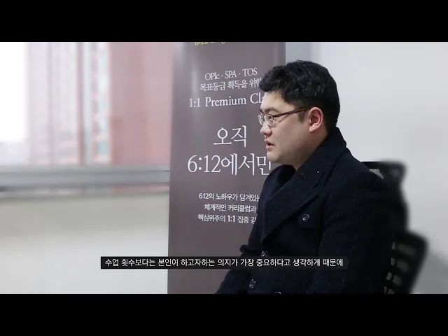 수업을 하면 할수록 진정한 대화의 즐거움이란 이런 것이 아닐까 라는 생각을 하게 합니다. 상대의 의견을 귀 담아 듣고, 자신의 의견을 이야기하며 세상을 보는 새로운 관점도 깨닫게 되는 즐거운 대화 시간이요. 영어 회화 실력이 늘어나도록 세심히 이끌어주시는 것 뿐만 아니라, 이런 대화의 즐거움까지도 알게 해 주신 선생님께 진심으로 감사드립니다. 또한 좋은 선생님과 함께 할 수 있도록 배려해주신 612어학원에도 감사의 말씀을 전합니다.