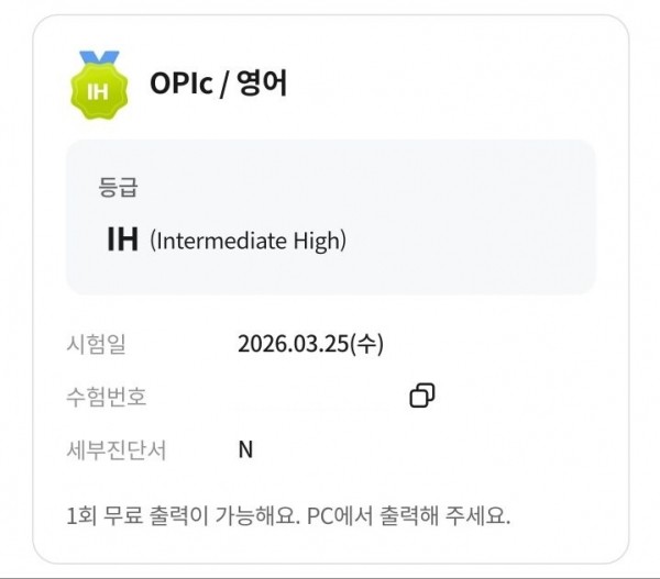 OPIC 세부 성적서도 유료로 받아 봤지만 정확하게